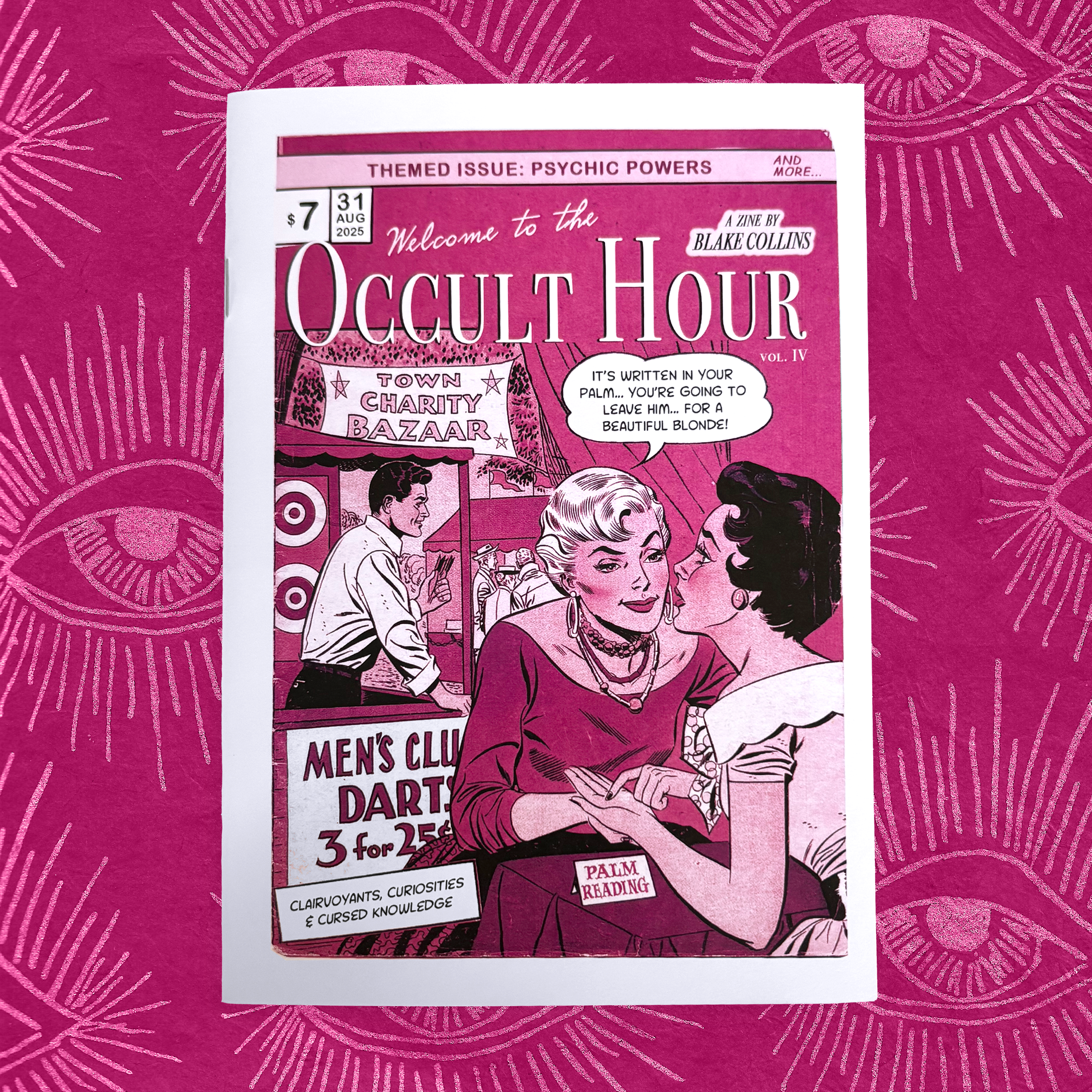 I make spooky zines comprised of doodles, vintage pictures, quotes, and esoteric information synthesized into bite-sized articles. Zines are released in small batches through my little store: